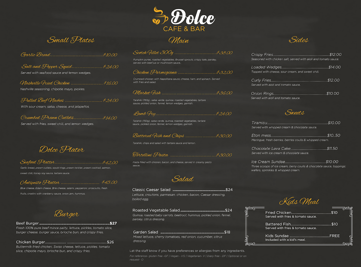 Welcome to Dolce Cafe & Bar, a delightful culinary gem nestled at 28 Main Road, Katikati, New Zealand. This cafe invites you to indulge in a diverse menu featuring fresh, appetizing dishes perfect for any palate.